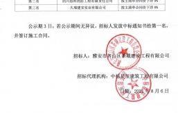 雅安市名山區(qū)茶城建設(shè)工程有限公司2021年至2024年(三年)建設(shè)項(xiàng)目施工階段全過程造價(jià)控制服務(wù)采購,根據(jù)工程招標(biāo)投標(biāo)文件的有關(guān)法律、法規(guī)、規(guī)章的規(guī)定,經(jīng)雅安市名山區(qū)茶城建設(shè)工程有限公司競爭性磋商流程,評(píng)審工作已經(jīng)結(jié)束,中選人已經(jīng)確定,現(xiàn)將中選結(jié)果公示如下:中選單位名稱:四川明力建設(shè)工程項(xiàng)目管理有限公司成交價(jià):下浮40%進(jìn)場時(shí)間:待采購人通知中選質(zhì)量標(biāo)準(zhǔn):符合中價(jià)協(xié)《建設(shè)項(xiàng)目工程結(jié)算編審規(guī)程》CECA/GC3-2007和《建設(shè)工程造價(jià)咨詢成果文件質(zhì)量標(biāo)準(zhǔn)》CECA/GC7-2012規(guī)定的合格標(biāo)準(zhǔn)自中選結(jié)果公示之日起一個(gè)工作日內(nèi),對(duì)中選結(jié)果無異議的,采購...